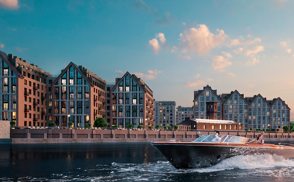 В проекте представлены студии и квартиры с 1, 2 и 3 спальнями, также есть варианты с европланировками. В помещениях предусмотрены потолки от 2,85 до 5,15 метров и увеличенные окна, откуда открываются живописные виды на набережную Невы.