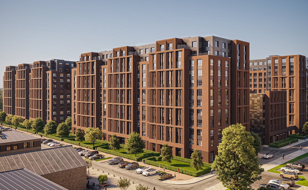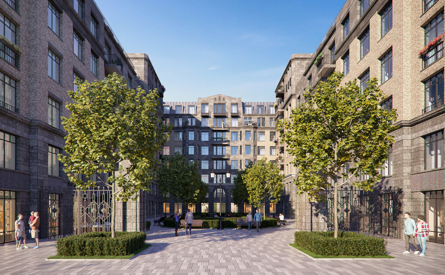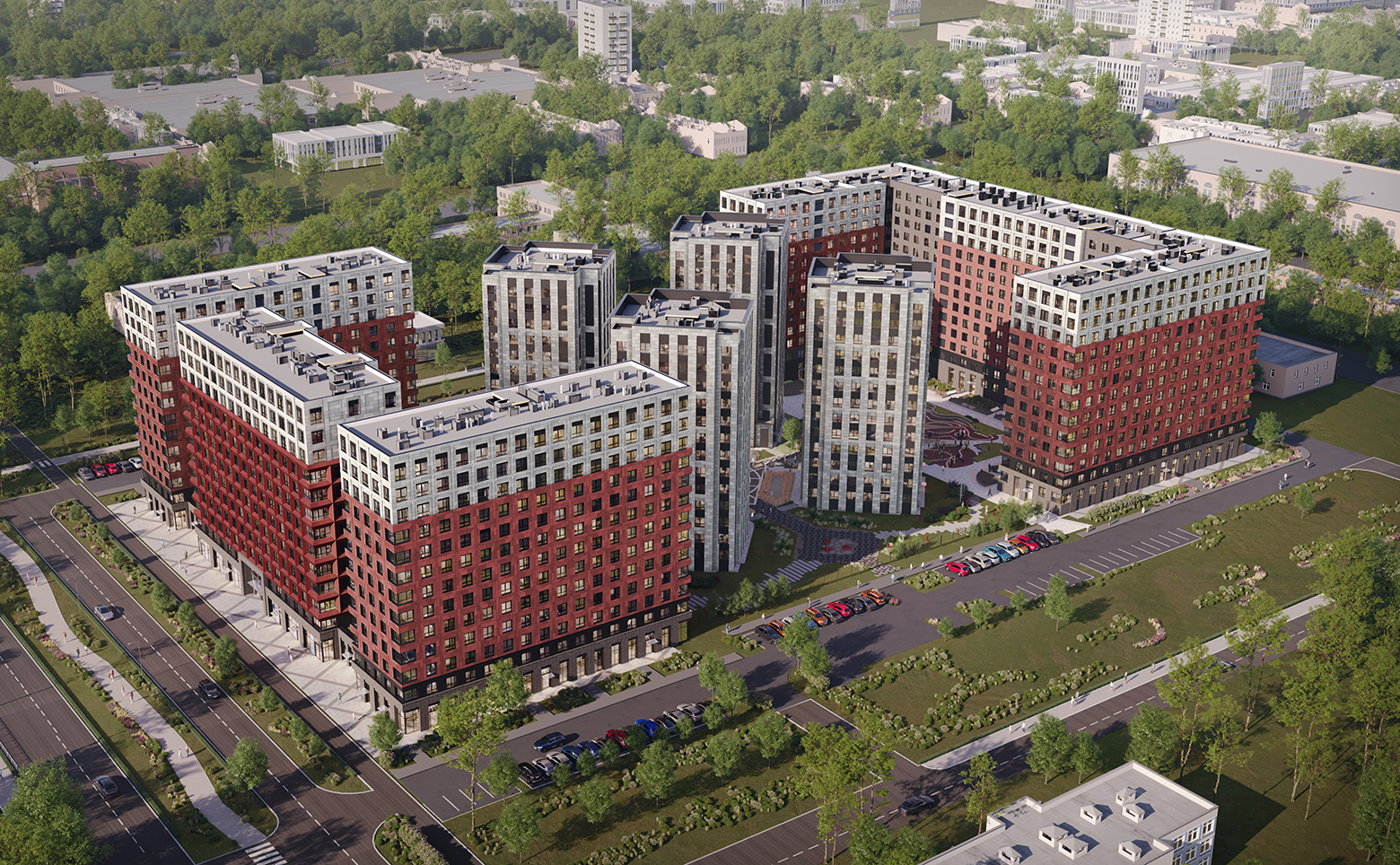 Проект представлен монолитными домами не выше 9 этажей. Фасады облицованы темным клинкерным кирпичом. Лобби имеют высокие потолки и стеклянные двери, установлены современные бесшумные лифты. Доступ осуществляется с помощью распознавания лиц IP-домофоном или ключ-картой.
