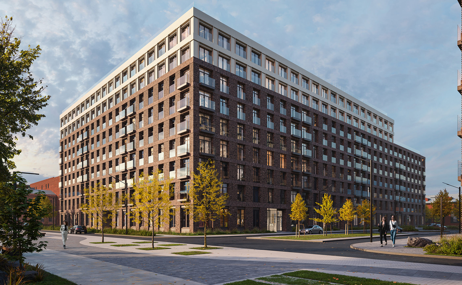 Жилой комплекс представлен разноэтажным монолитным зданием на 10–12 этажей. Фасады выполнены с акцентными декоративными элементами, отсылающими к образу бывшего пакгауза Варшавского вокзала. Контраст теплого кирпича и светлой штукатурки подчеркивает композиционный ритм, 3D-кладка и вертикальные акценты формируют динамичную архитектуру. В проекте используется эксклюзивный дизайн-код с элементами промышленной кирпичной архитектуры, который поддерживает общий характер внешнего облика. На первом этаже предусмотрены светлые лобби с панорамными окнами, а также колясочные в каждой секции и велосипедные на первом этаже.